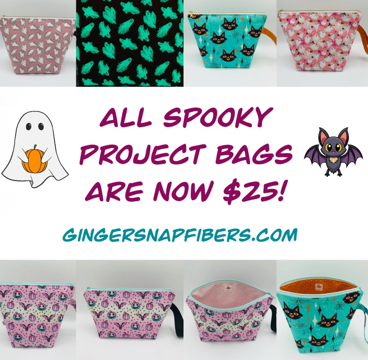 Cutie Ghosts Spooky Knitting Crochet Zipper Style Project Bag | Sock Size