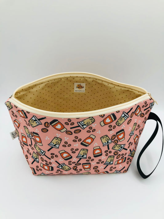 Java Cups Knitting and Crochet Zipper Style Project Bag | XL Sock Size