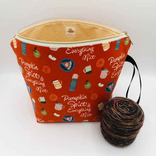 Pumpkin Spice and Everything Nice Knitting and Crochet Zipper Style Project Bag | XL Sock Size