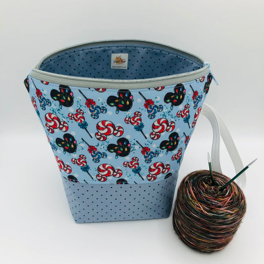 Peppermint Mouse Friends Holiday Knitting and Crochet Zipper Style Project Bag | XL Sock Size