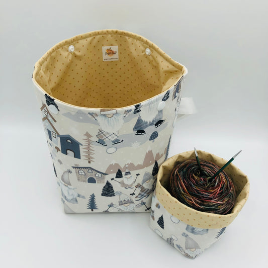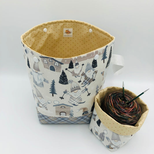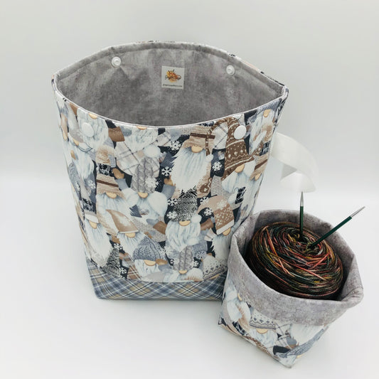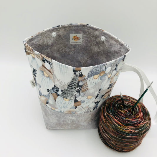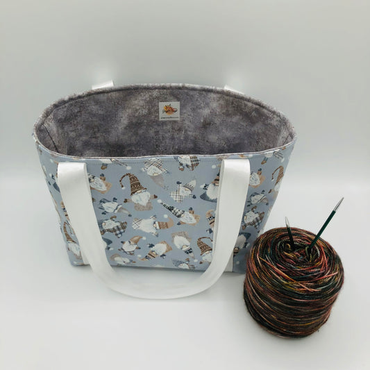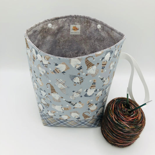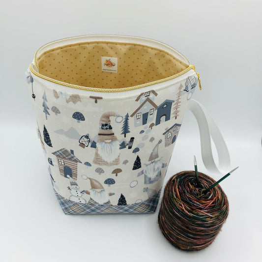 Knitty Gnomes Holiday Knitting Crochet Tote Style Project Bag | Shortie Sock Size