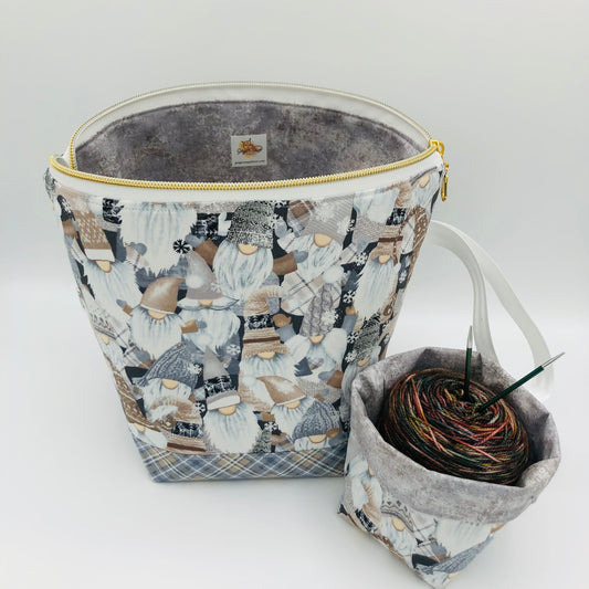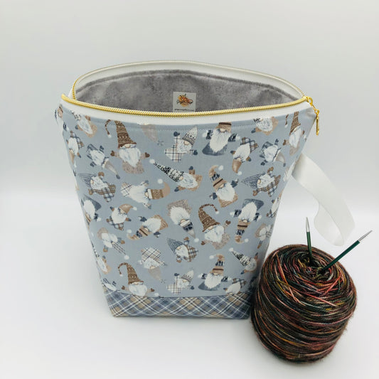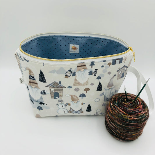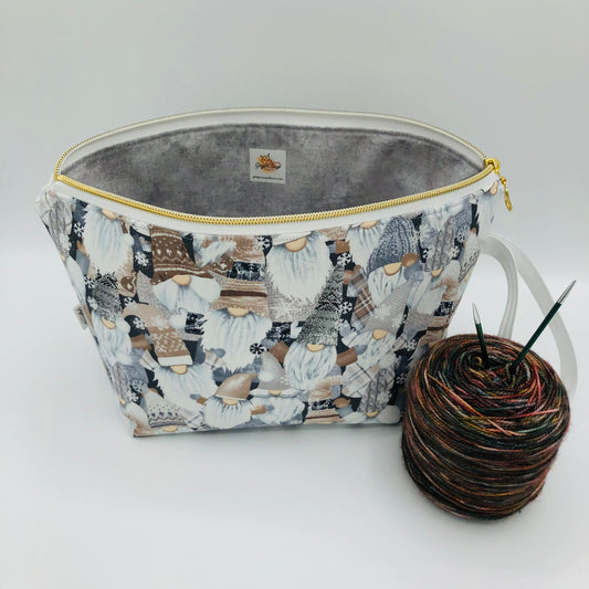 Knitty Gnomes Holiday Knitting and Crochet Zipper Style Project Bag | XL Sock Size
