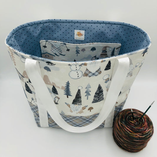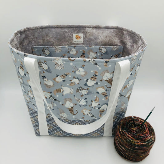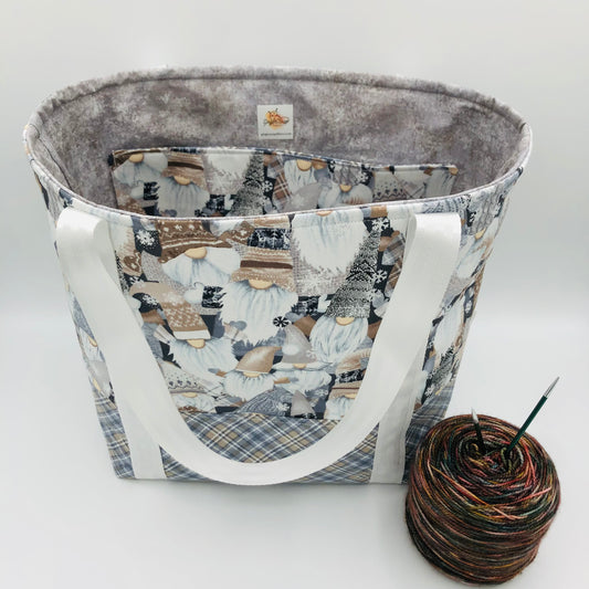 Knitty Gnomes Holiday Tote Style Knitting and Crochet Project Bag | Sweater Size