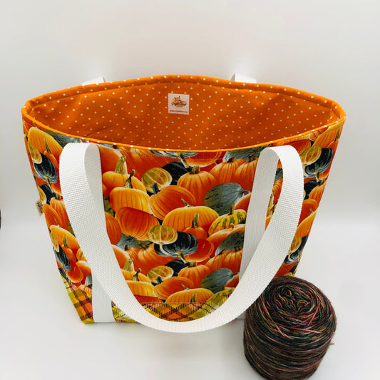 Vivid Pumpkins Tote Style Knitting and Crochet Project Bag | Sweater Size
