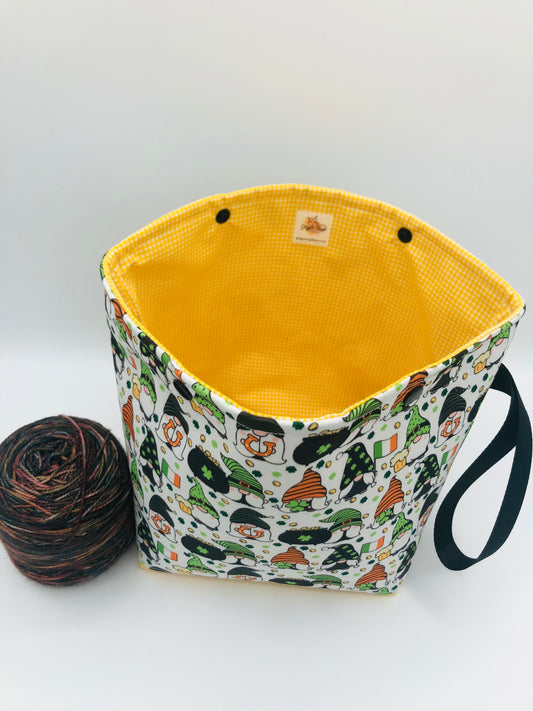 CLEARANCE St. Patrick’s Gnomes (white) Knitting Crochet Snap Style Project Bag | Sock Size