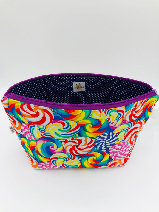 Rainbow Lollipops Knitting Crochet Zipper Style Project Bag | Shortie Sock Size