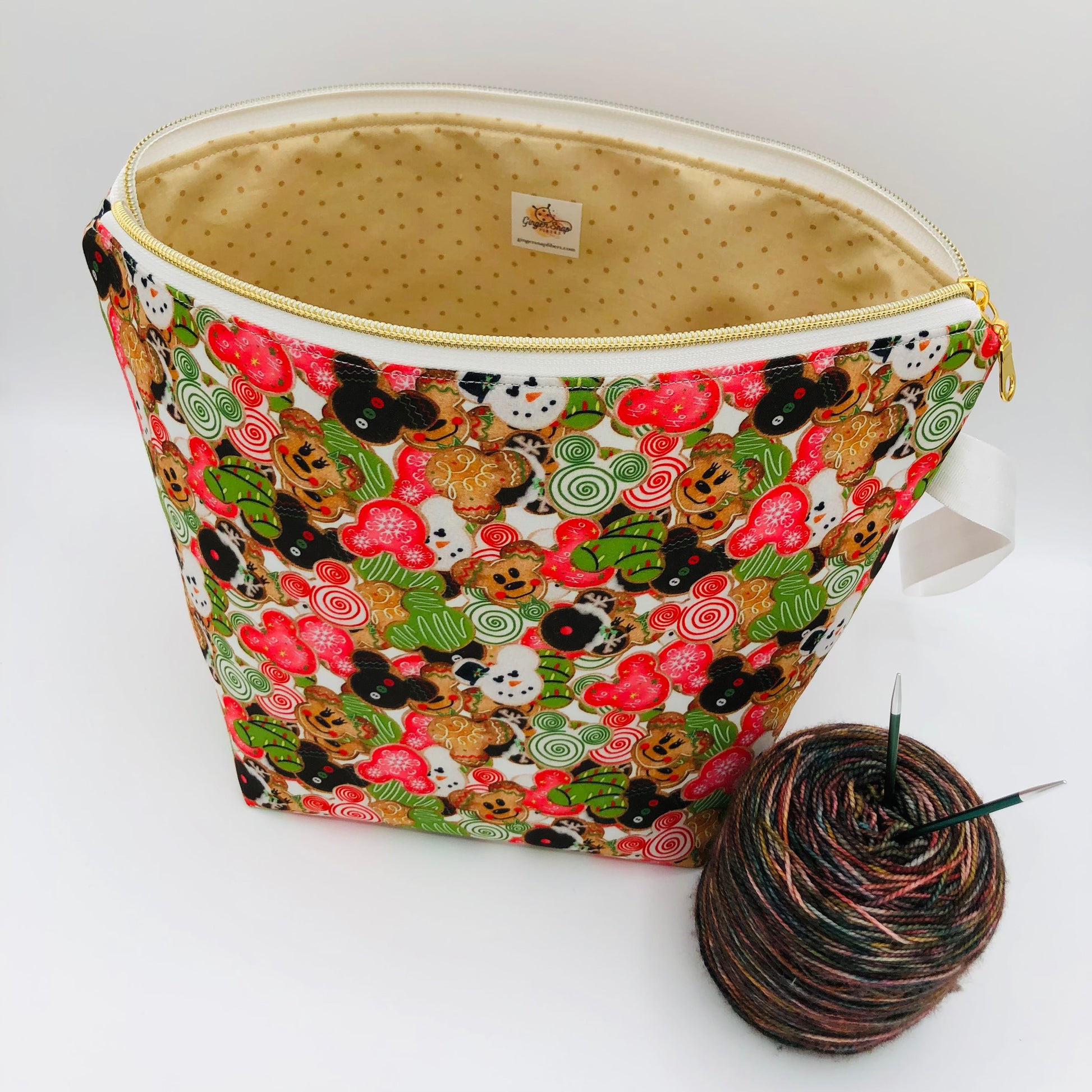 Cookie Mouse Friends Holiday Knitting and Crochet Zipper Style Project Bag | XL Sock Size