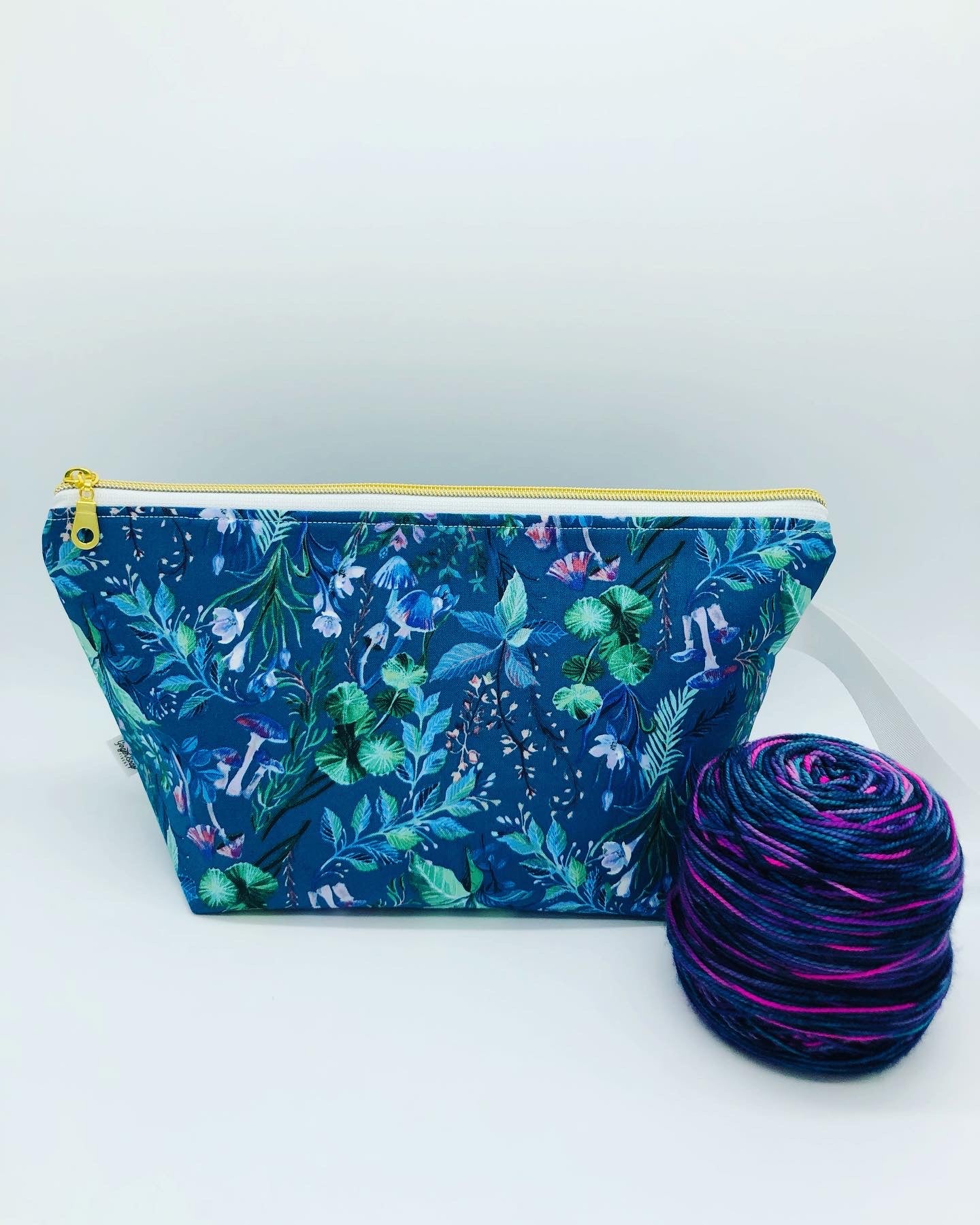 Enchanted Mushrooms (dark) Knitting Crochet Zipper Style Project Bag | Shortie Sock Size