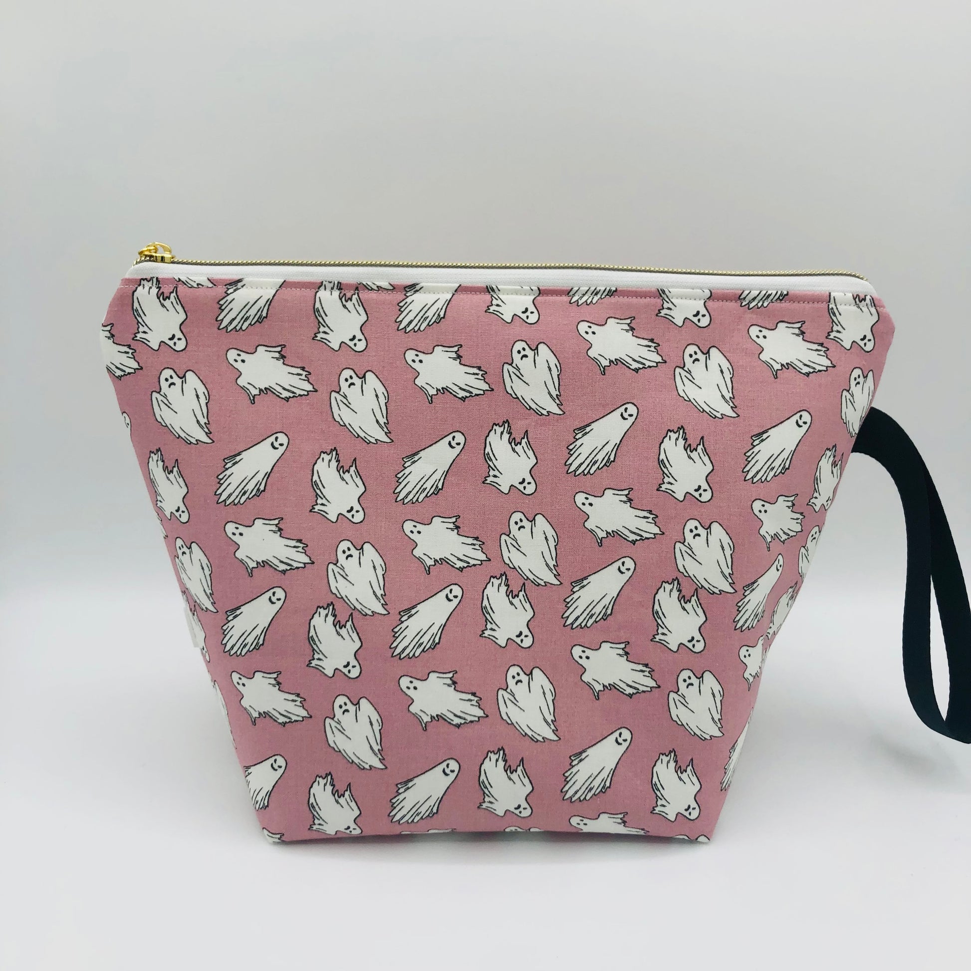 Glow in the Dark Ghosts Spooky Knitting and Crochet Snap Style Project Bag | XL Sock Size
