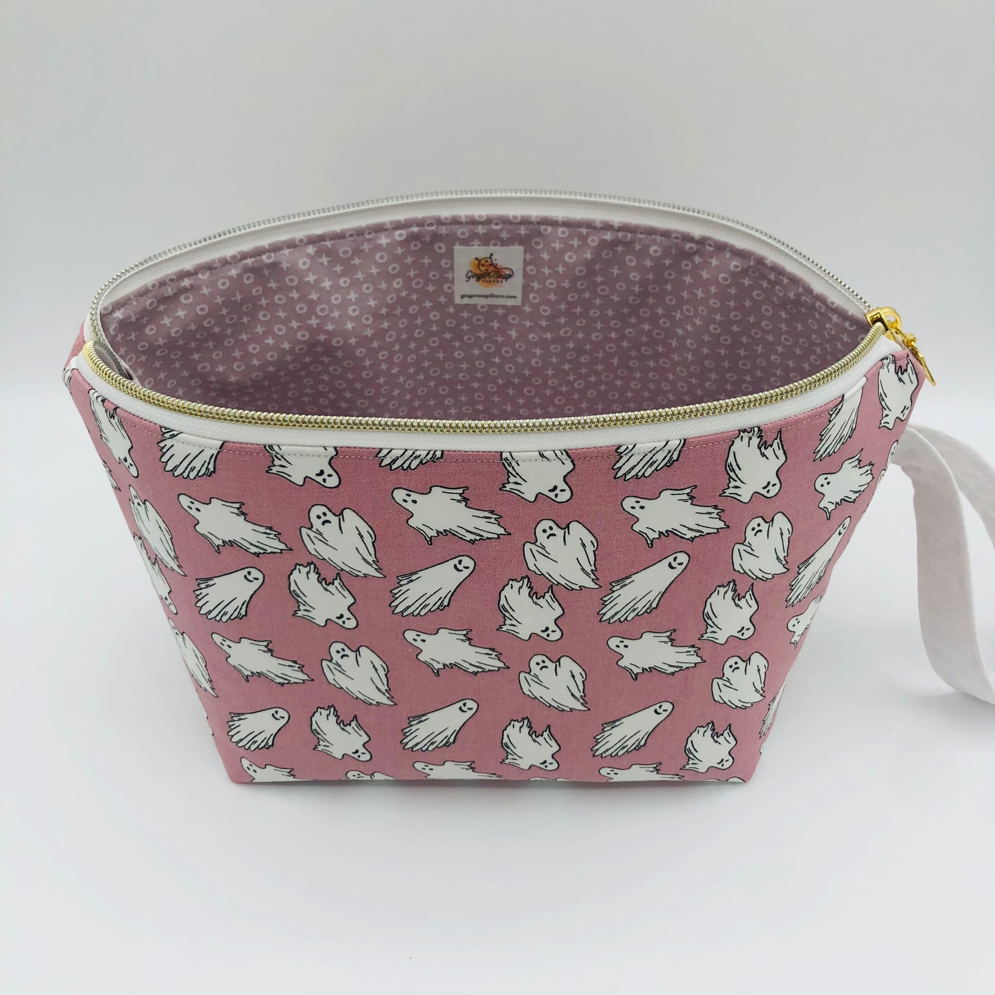 Glow in the Dark Ghosts Spooky Knitting Crochet Zipper Style Project Bag | Shortie Sock Size