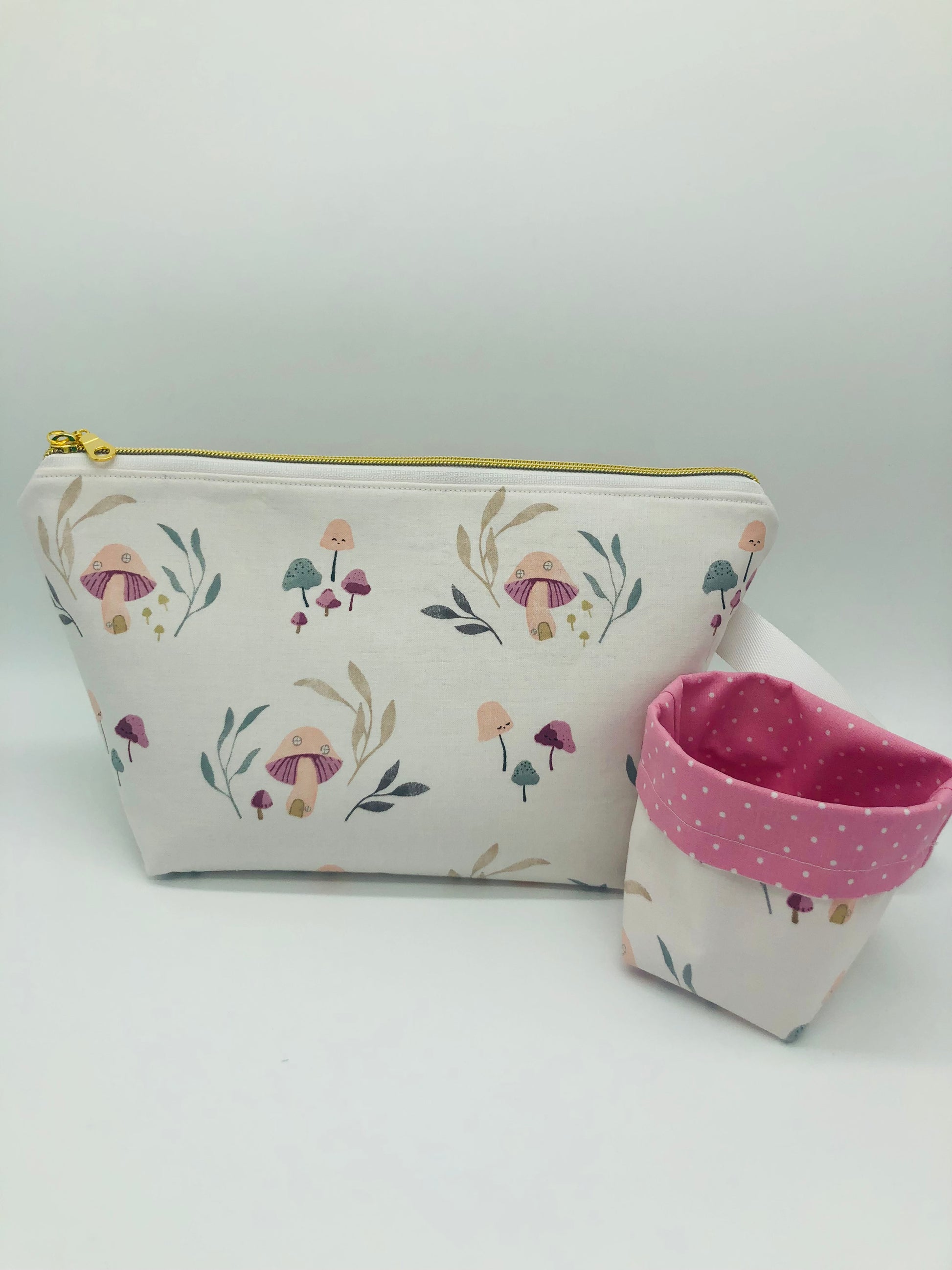 Mushroom Houses Knitting Crochet Zipper Style Project Bag + 100g Yarn Cozy| Shortie Sock Size