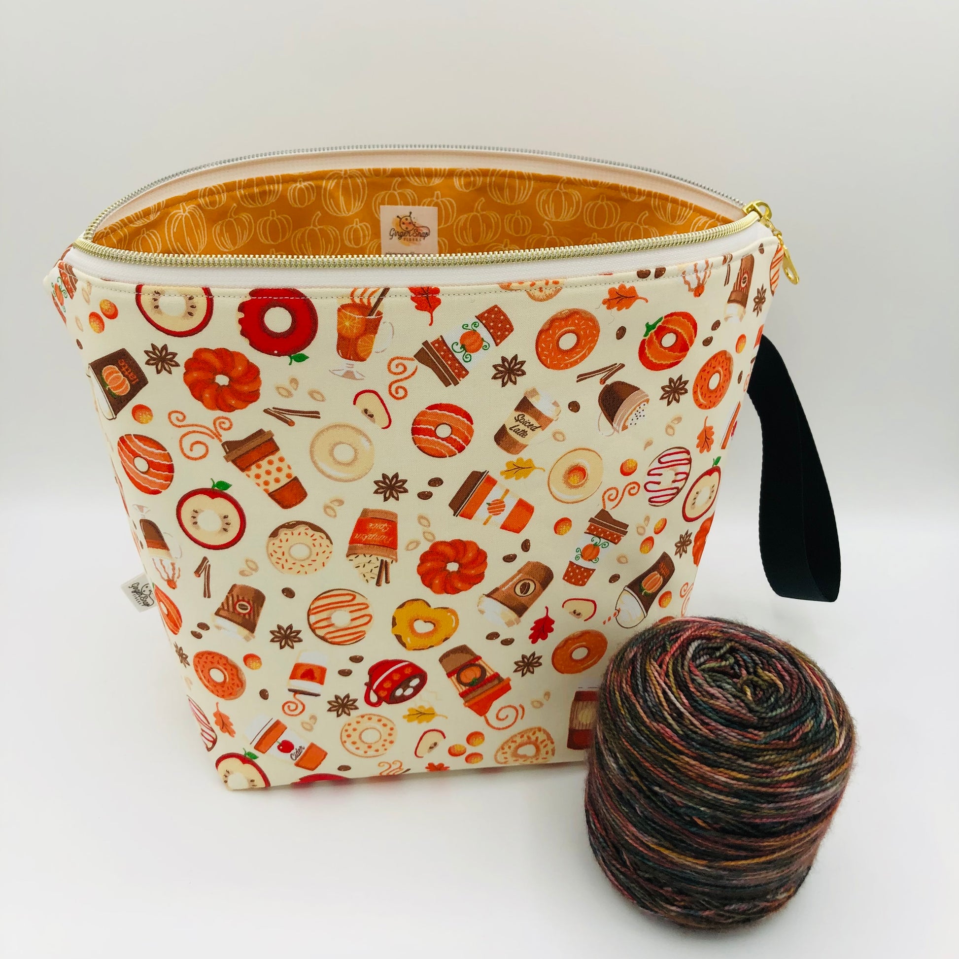 Neutral Pumpkin Spice Knitting and Crochet Zipper Style Project Bag | XL Sock Size