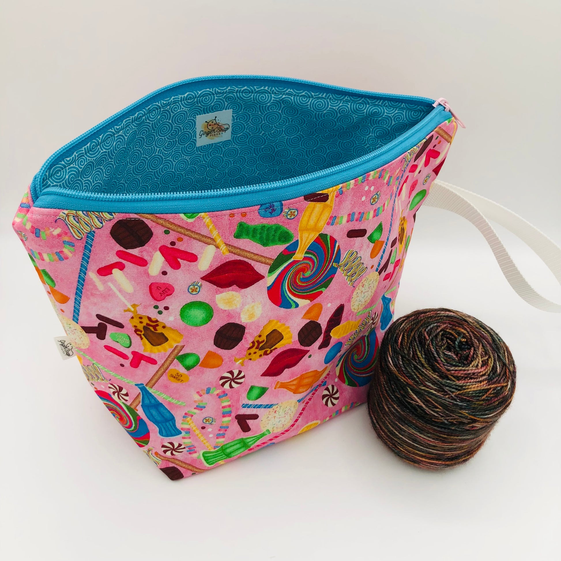 Rainbow Candies Knitting and Crochet Zipper Style Project Bag | XL Sock Size