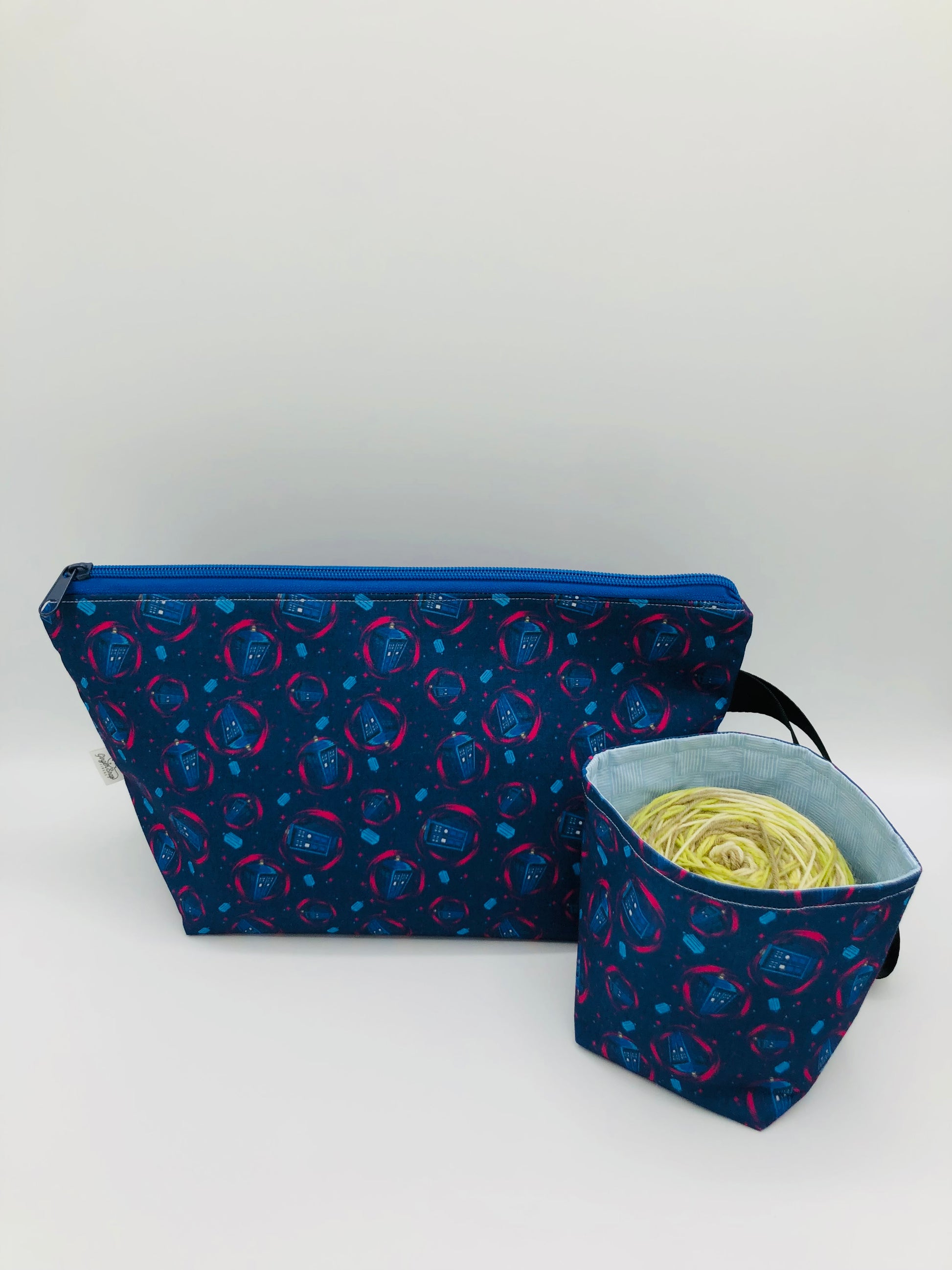 Time Traveler Knitting Crochet Zipper Style Project Bag + 100g Yarn Cozy | Shortie Sock Size